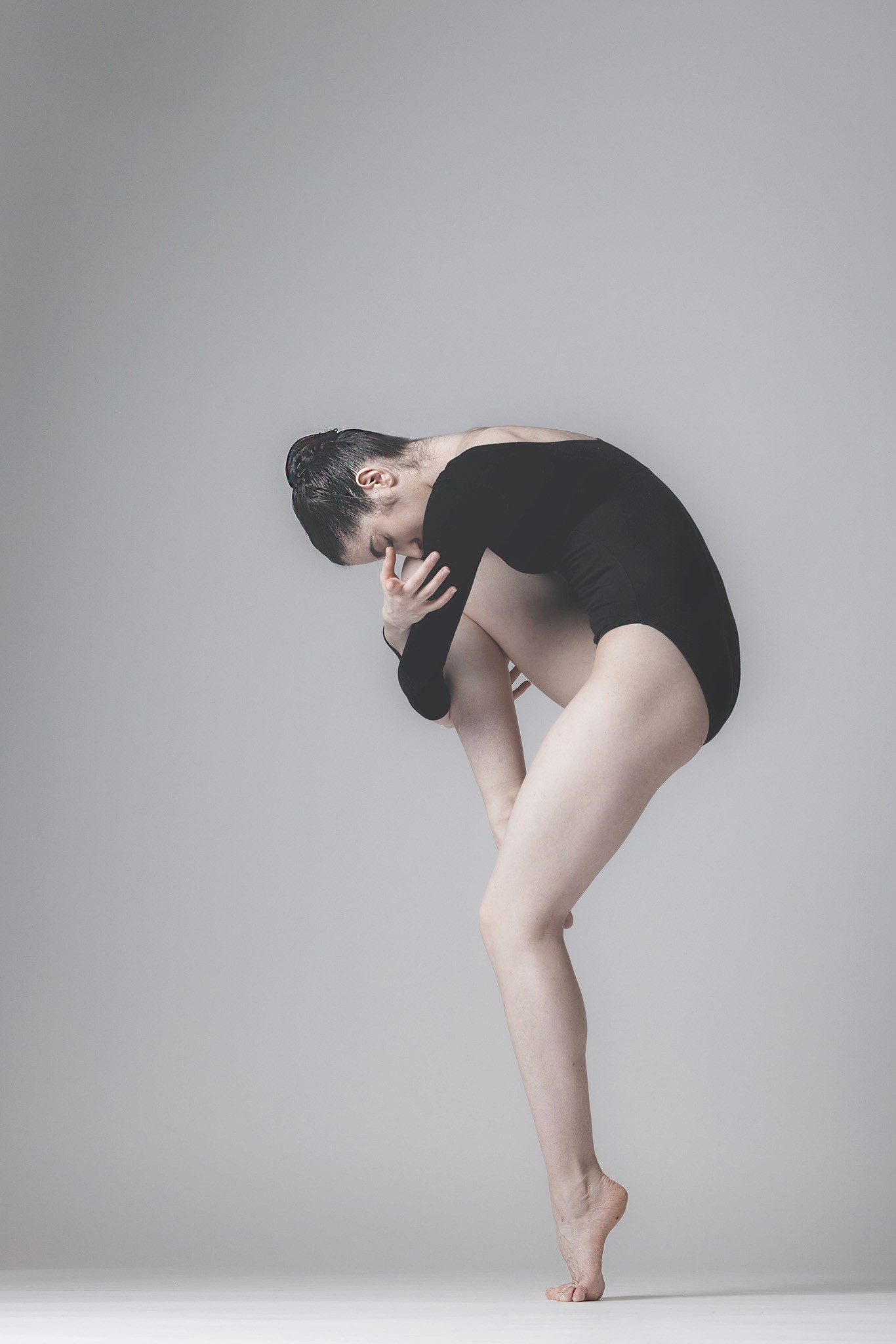 Technically, the work relies on a restrained and deliberate visual language. The photographs balance controlled composition with moments of instability, reflecting the physical and mental demands of ballet. Light is used sculpturally, defining muscles, tension, and posture, while framing often isolates the body from its surroundings, allowing movement and gesture to carry the narrative. The absence of decorative context places full attention on the dancer’s relationship with gravity, balance, and effort. The images do not chase spectacle, but remain close to the body, where fatigue, control, and concentration become visible.