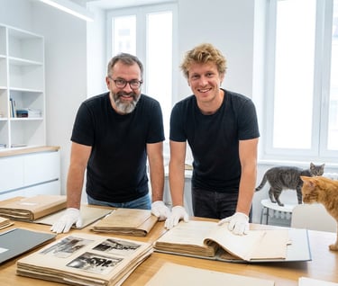 Wir sind kein großes Archivhaus und auch keine Agentur mit zehn Abteilungen. Wir sind zwei Menschen – einer 45, einer 32 – und genau die richtige Größe, um Firmengeschichten persönlich, präzise und mit echter Hingabe zu erzählen. Unsere Erfahrung ist begrenzt, aber wertvoll: